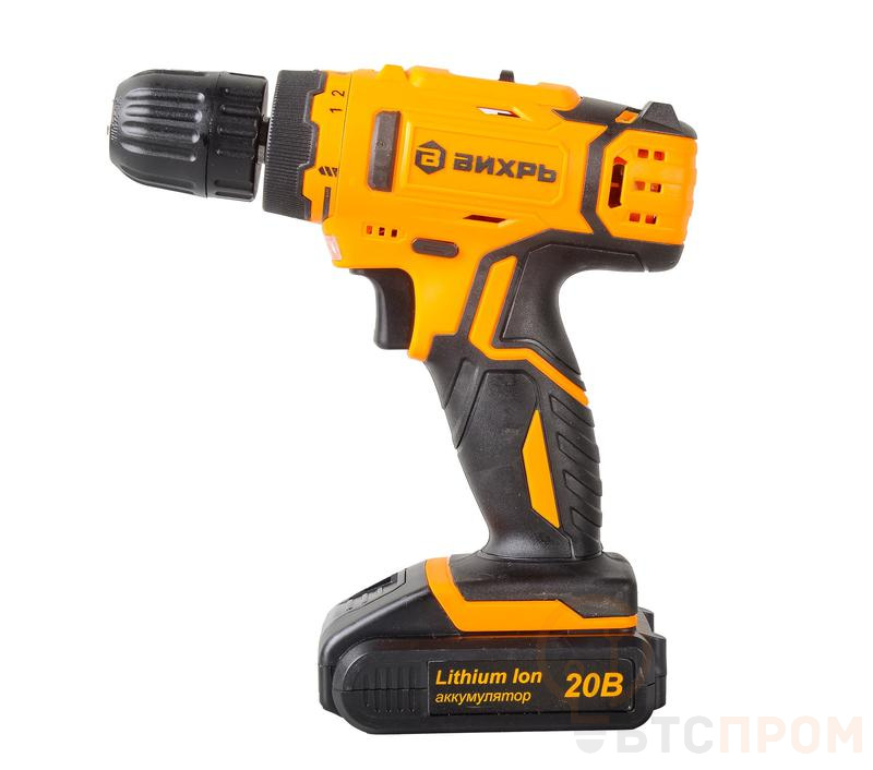 –Дрель-шуруповерт аккумуляторная ДА-20Л-2КА с набором оснастки 65 предметов Вихрь 72/14/36