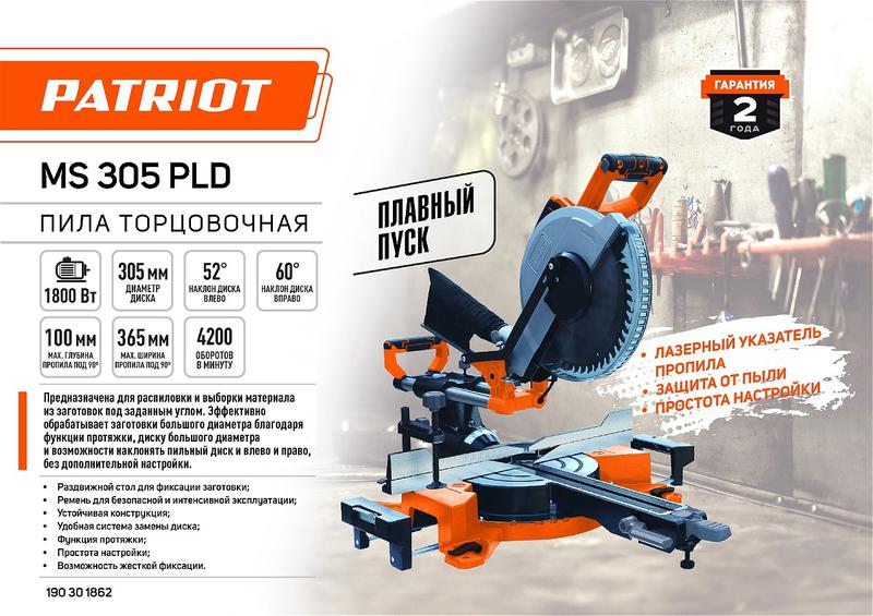 Пила торцовочная MS 305PLD 1800Вт пильный диск 305мм лазерная направляющая двойн. наклон протяг PATRIOT 190301862
