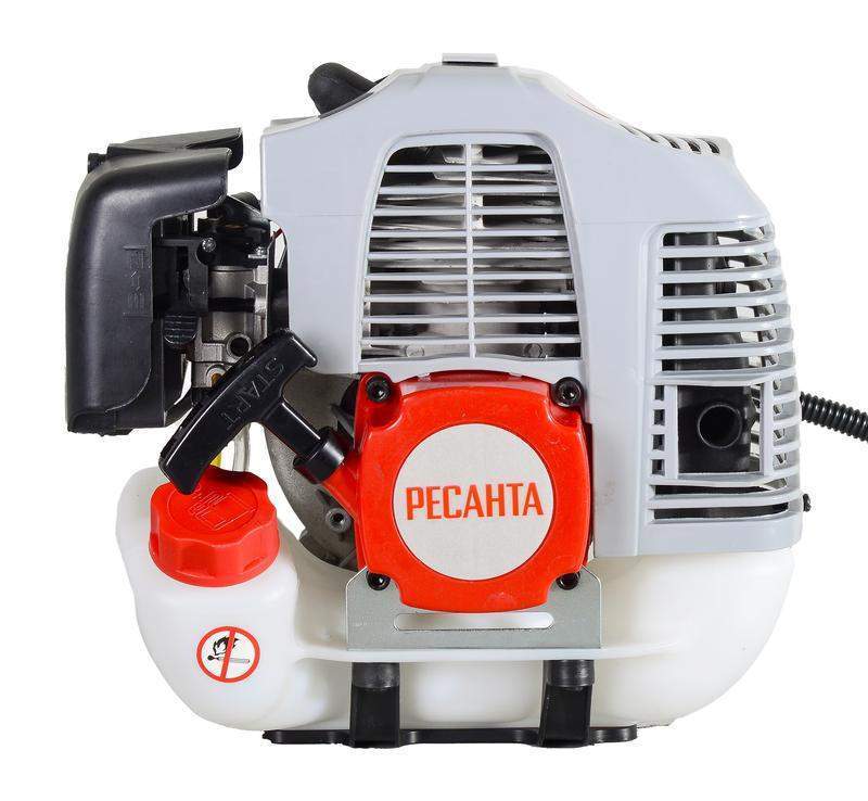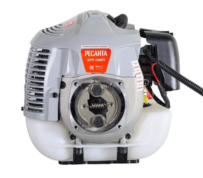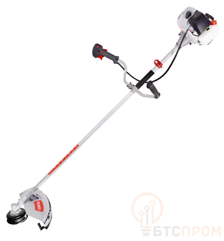 Бензиновый триммер БТР-1900П Ресанта относится к категории облегчённых инструментов, которые подходят для проведения небольшого объёма работ. Он может использоваться как на ровных участках, так и труднодоступных местах, для того чтобы скашивать траву, бурьян, поросли кустарников и деревьев. В качестве режущего инструмента может выступать леска, обеспечивающая ширину скашивания 460 мм или нож – 255 мм. В комплекте к триммеру идет стандартная катушка лески и трехлепестковый нож. Мощность его двухтактного двигателя составляет 1.9 кВт. Двигатель имеет увеличенный рабочий ресурс, который достигнут благодаря хромированной поршневой группе, надёжным поршневым кольцам и высококачественной сборке. Воздушное охлаждение позволяет работать длительное время без перерывов. В качестве топлива используется смесь бензина и моторного масла. Удобство работы с бензиновым триммером БТР-1900П обеспечено лёгким запуском и эффективной антивибрационной системой. Цельная штанга оснащена регулируемой по высоте велосипедной рукояткой. Плечевой ремень позволяет повесить бензотриммер на одно плечо, сняв нагрузку с рук. Наличие блокиратора курка и защитного кожуха повышают безопасность этого инструмента. Защитные очки идут в комплекте. Модель Ресанта БТР-1900Р имеет такие же параметры, но разборную штангу. Основные характеристики: Антивибрационная система Есть Бесключевая регулировка рукояток Нет Бренд Ресанта Число оборотов, об/мин 9500±500 Мощность, Вт 1900 Габариты упаковки 0.31 ? 0.32 ? 0.23 м Разъемная штанга Нет Ширина скоса диском, мм 255 Ширина скоса леской, мм 460 Тип диска 3Т Тип двигателя 2-х тактный, с воздушным охлаждением Тип катушки Стандартная Тип ремня Стандартный Уровень звукового давления, дБ 96 Вес, кг 9.193 кг Зажигание электронное (CDI) Защитные очки Есть