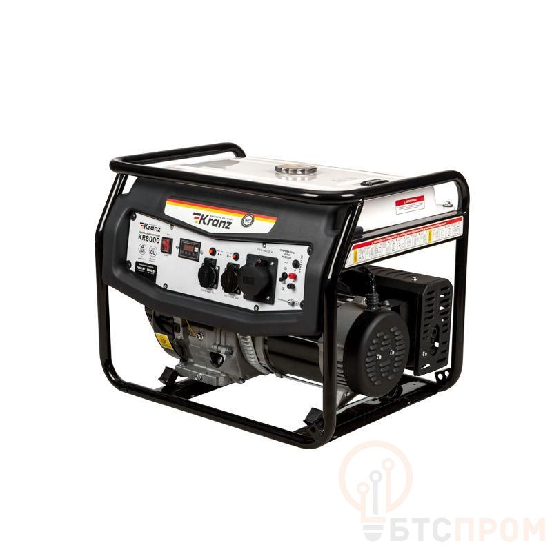 Бензиновый генератор KR8000 предназначен для обеспечения электричеством большого загородного дома, магазина или строительной площадки. Устройство может запитать сразу несколько потребителей, например: обогреватель или кондиционер, насос и электроинструменты. Работает от АИ-92. Многофункциональный дисплей информативно отображает часы работы, напряжение, частоту тока и предупреждает о низком уровне масла. Обмотка альтернатора из 100% меди эффективно проводит ток и минимизирует нагрев при значительных нагрузках. Увеличенный бензобак 25 л гарантирует до 7-8 часов работы. Стальная рама диаметром 32 мм для установки ручек и колес защищает внутренние детали от повреждений. Система поддержания параметров выходного напряжения (AVR) обеспечивает стабильное питание. Многоступенчатая система защиты от повреждений гарантирует безопасность работы. Функция Duplex предоставляет возможность работы с реактивными потребителями, такими как компрессор, насос, электроинструменты и т.д. Усиленная балка крепления двигателя и демпферные подушки снижают уровень вибраций. 1-цилиндровый 4-тактный двигатель (460 см3) с воздушным охлаждением, стальным распредвалом и литыми поршнями обеспечивает эффективную работу. Генератор оборудован усиленным шнуром стартера, свечой зажигания Bosch, пылевлагозащитной кнопкой включения IP65, 2 евро розетками (16 А), 1 силовой розеткой (32 А) и выходом на 12 В. Предусмотрены индивидуальные предохранители для каждой розетки.