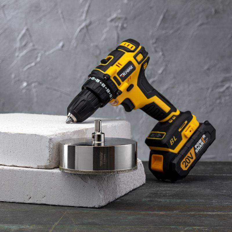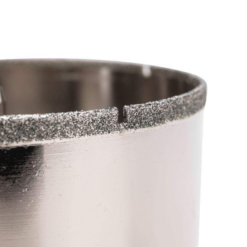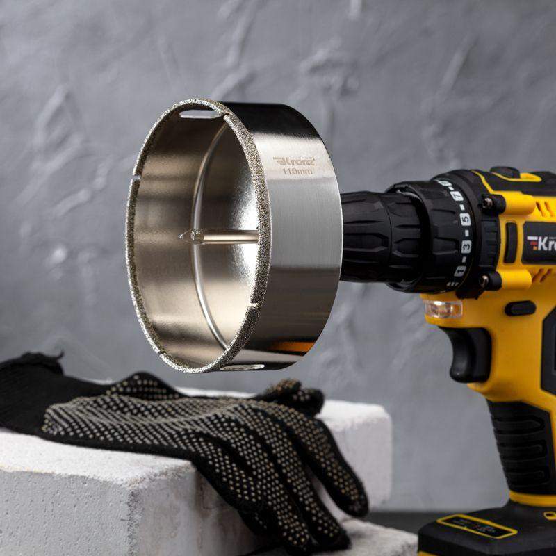 Алмазная коронка диаметром 110 мм используется при сверлении керамогранита, керамики, стекла. Наличие центровочного сверла обеспечивает точное позиционирование коронки на поверхности и помогает избежать смещения во время работ. Покрытие алмазной коронки выполнено гальваническим способом в два слоя, что обеспечивает эффективное сверление и продолжительный рабочий ресурс инструмента. Равномерное распределение алмазов по режущей кромке гарантирует аккуратное сверление материала без трещин и сколов. Высота алмазного слоя в 6 мм обеспечивает высокую производительность, а трехгранный хвостовик – надежную фиксации в патроне. При использовании алмазных коронок для сверления отверстий необходимо охлаждение, которое достигается путем подачи воды в рабочую зону.