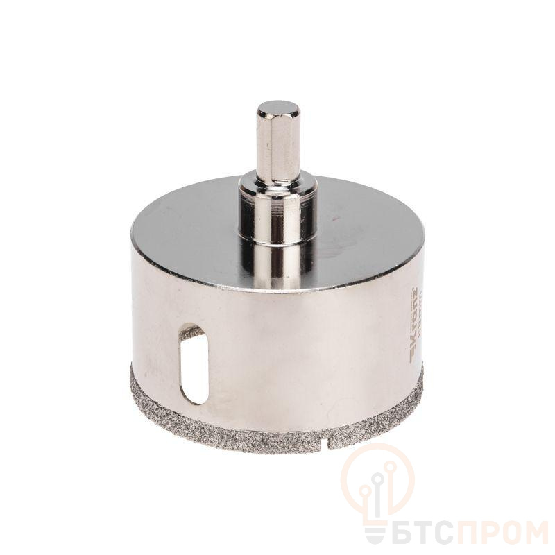 Алмазная коронка диаметром 65 мм используется при сверлении керамогранита, керамики, стекла. Наличие центровочного сверла обеспечивает точное позиционирование коронки на поверхности и помогает избежать смещения во время работ. Покрытие алмазной коронки выполнено гальваническим способом в два слоя, что обеспечивает эффективное сверление и продолжительный рабочий ресурс инструмента. Равномерное распределение алмазов по режущей кромке гарантирует аккуратное сверление материала без трещин и сколов. Высота алмазного слоя в 6 мм обеспечивает высокую производительность, а трехгранный хвостовик – надежную фиксации в патроне. При использовании алмазных коронок для сверления отверстий необходимо охлаждение, которое достигается путем подачи воды в рабочую зону.
