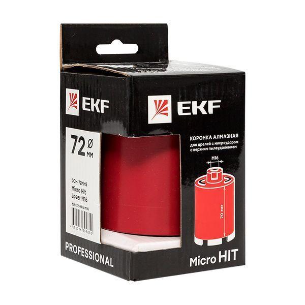 Коронка алмазная для дрелей с микроударом (верхнее пылеудаление) DCH-72MHS Micro Hit Laser M16 Professional EKF dch-72-mhs-m16