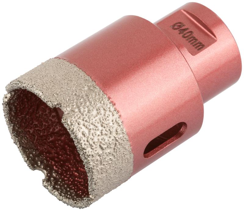 Коронка алмазная Cutop Special предназначена для УШМ с посадкой М14. Применяется для сухого сверления: керамогранита, мрамора, шлакоблока, кирпича, керамической плитки, стекла, пенобетона, дерева и армированного бетона. Сухой рез обеспечивается за счет высокотемпературного вакуумного метода спекания алмазных сегментов при изготовлении коронки. Тело коронки цельное, что обеспечивает высокую прочность, которая позволяет работать на самых высоких оборотах. Использование охлаждения существенно увеличивает ресурс коронки. В коронках диаметром 25-68 мм имеются компенсационные пропилы, которые предотвращают перегрев и позволяют улучшать отвод шлама из зоны резания. Материал: Инструментальная сталь, технические алмазы. Упаковка: блистер.