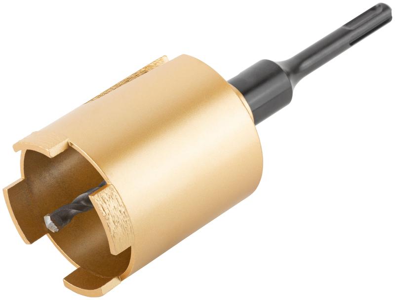Коронка кольцевая алмазная КУРС с центрирующим сверлом и хвостовиком SDS-plus предназначена для безударного сверления отверстий под монтажные коробки в бетоне (в том числе армированном) и кирпиче. Требуется водяное охлаждение. Алмазная заточка зубьев обеспечивает высокую скорость выполнения работ. Центрирующее сверло позволяет точно позиционировать коронку перед началом сверления и предотвращает ее смещение во время работы.