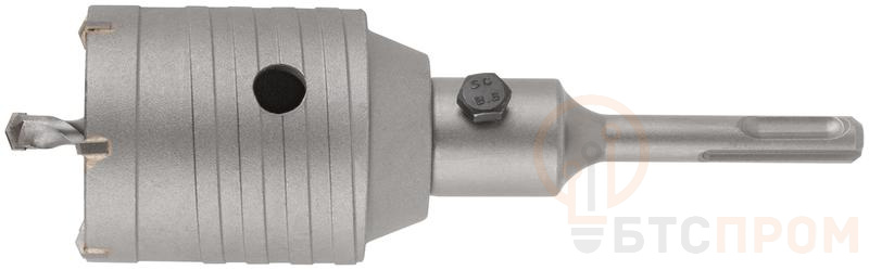 Коронка по бетону для ударного сверления перфоратором отверстий в бетонных, кирпичных и каменных стенах. Резцы коронки с алмазной заточкой изготовлены из композитного карбид-вольфрамового сплава ВК6, выдерживающего высокие ударные нагрузки. Центрирующее сверло для точного позиционирования и предотвращения смещения. Спиральная форма коронки способствует снижению трения и улучшает отвод пыли. Резьбовая посадка хвостовика М14. Коронки совместимы с удлинителями FIT IT арт. 33451–33458 и 33459–33460.