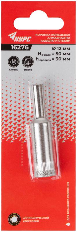 Коронка алмазная кольцевая по кафелю и стеклу 12х50мм КУРС 16276