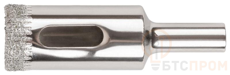 Предназначена для вырезания круглых отверстий в керамограните, камне, стекле, кафельной плитке. Влажное сверление. Высокая концентрация алмазного зерна обеспечивает длительный ресурс. Чистый рез без сколов достигается за счет мелкого размера алмазных частиц. Отверстия в корпусе предотвращают перегрев и способствуют отводу шлама. Хромированное покрытие предотвращает коррозию. Цилиндрический хвостовик совместим с большинством типов патронов электроинструментов.