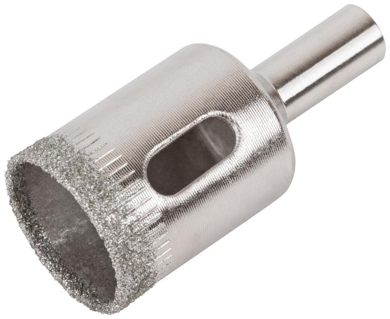 Предназначена для вырезания круглых отверстий в керамограните, камне, стекле, кафельной плитке. Влажное сверление. Высокая концентрация алмазного зерна обеспечивает длительный ресурс. Чистый рез без сколов достигается за счет мелкого размера алмазных частиц. Отверстия в корпусе предотвращают перегрев и способствуют отводу шлама. Хромированное покрытие предотвращает коррозию. Цилиндрический хвостовик совместим с большинством типов патронов электроинструментов.