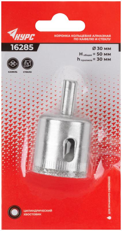 –Коронка алмазная кольцевая по кафелю и стеклу 30х50мм КУРС 16285