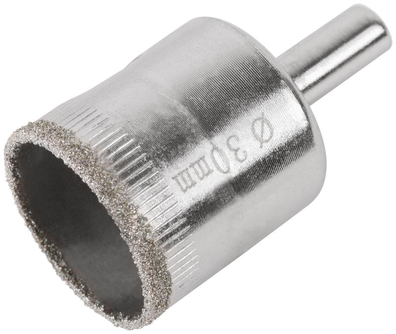 Предназначена для вырезания круглых отверстий в керамограните, камне, стекле, кафельной плитке. Влажное сверление. Высокая концентрация алмазного зерна обеспечивает длительный ресурс. Чистый рез без сколов достигается за счет мелкого размера алмазных частиц. Отверстия в корпусе предотвращают перегрев и способствуют отводу шлама. Хромированное покрытие предотвращает коррозию. Цилиндрический хвостовик совместим с большинством типов патронов электроинструментов.