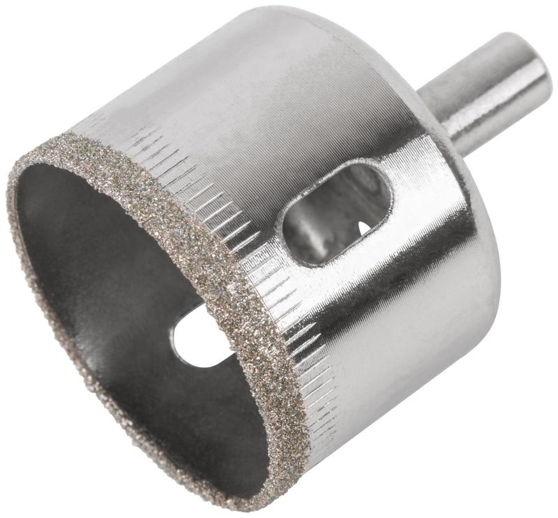 Предназначена для вырезания круглых отверстий в керамограните, камне, стекле, кафельной плитке. Влажное сверление. Высокая концентрация алмазного зерна обеспечивает длительный ресурс. Чистый рез без сколов достигается за счет мелкого размера алмазных частиц. Отверстия в корпусе предотвращают перегрев и способствуют отводу шлама. Хромированное покрытие предотвращает коррозию. Цилиндрический хвостовик совместим с большинством типов патронов электроинструментов.