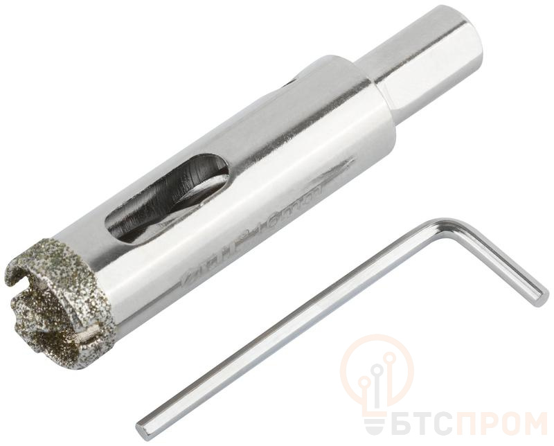 Кольцевая алмазная коронка по керамограниту FIT IT предназначена для вырезания круглых отверстий в керамограните, камне, стекле, кафельной плитке. Поставляются в комплекте с центрирующим сверлом и шестигранным ключом. Влажное сверление. Высокая концентрация алмазного зерна обеспечивает износостойкость и длительный ресурс коронок. Чистый рез без сколов достигается за счет мелкого размера алмазных частиц. Центрирующее сверло предотвращает смещение коронки во время работы и способствует точному позиционированию. Трехгранный хвостовик передает больший крутящий момент за счет стойкости к проворачиванию.