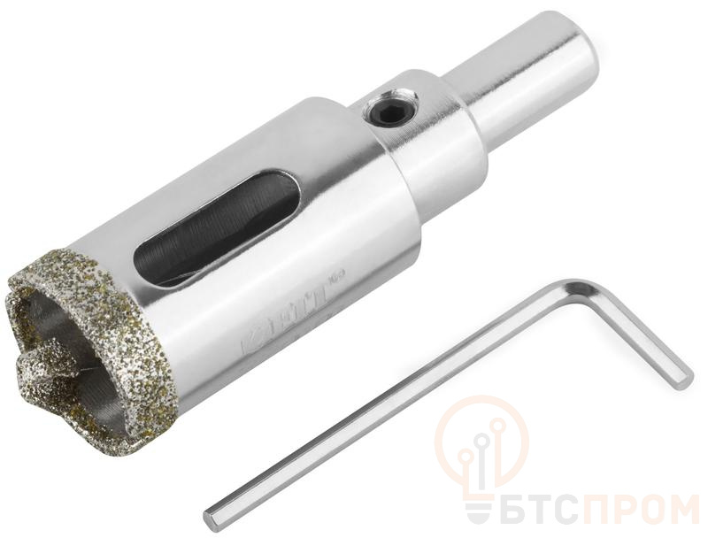 Кольцевая алмазная коронка по керамограниту FIT IT предназначена для вырезания круглых отверстий в керамограните, камне, стекле, кафельной плитке. Поставляются в комплекте с центрирующим сверлом и шестигранным ключом. Влажное сверление. Высокая концентрация алмазного зерна обеспечивает износостойкость и длительный ресурс коронок. Чистый рез без сколов достигается за счет мелкого размера алмазных частиц. Центрирующее сверло предотвращает смещение коронки во время работы и способствует точному позиционированию. Трехгранный хвостовик передает больший крутящий момент за счет стойкости к проворачиванию.