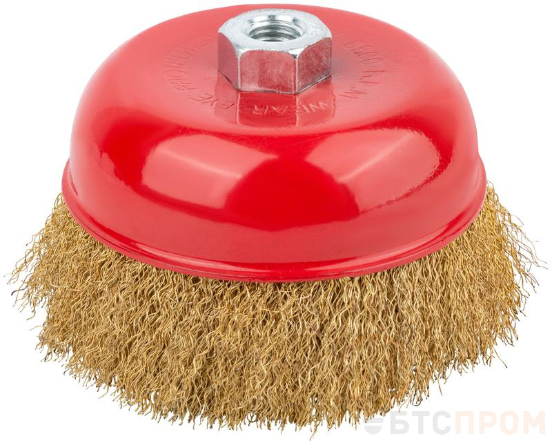 Корщетка-насадка для УШМ КУРС тип «чашка» предназначена для обработки дерева и металла, снятия краски. Форма «чашка» обеспечивает хорошую площадь прилегания к поверхности. Волнистая проволока обеспечивает деликатную зачистку поверхностей. Латунное покрытие проволоки предотвращает коррозию. Гайка с резьбой М14 обеспечивает прочную фиксацию на УШМ.