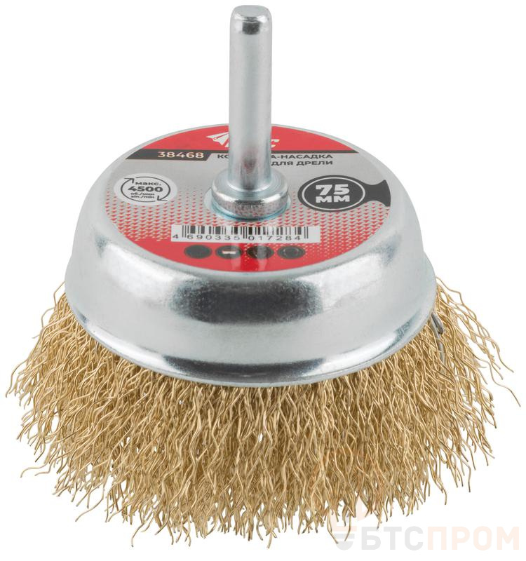 –Корщетка чашечная со шпилькой стальная латунированная волнистая проволока 75мм КУРС 38468