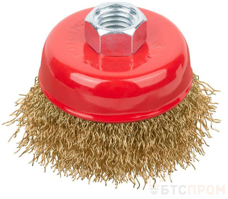 Тип «чашка», гайка М14. Для УШМ. Стальная латунированная, волнистая проволока. Упаковка: картонная коробка.