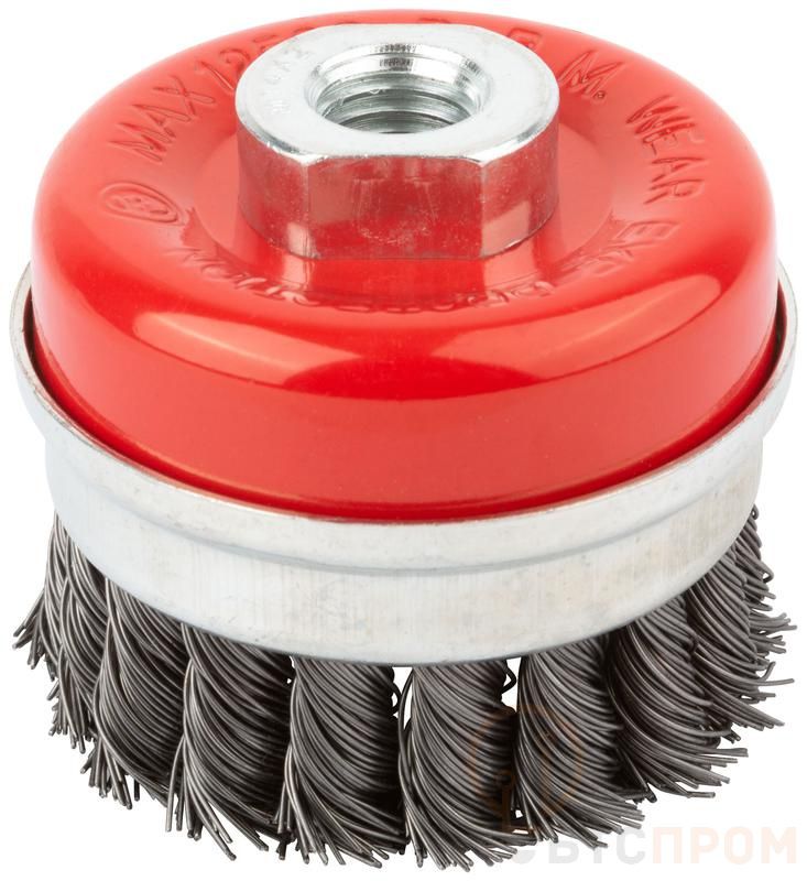 –Корщетка-чашка гайка М14 стальная витая проволока с бандажом профи 65мм FIT 39506
