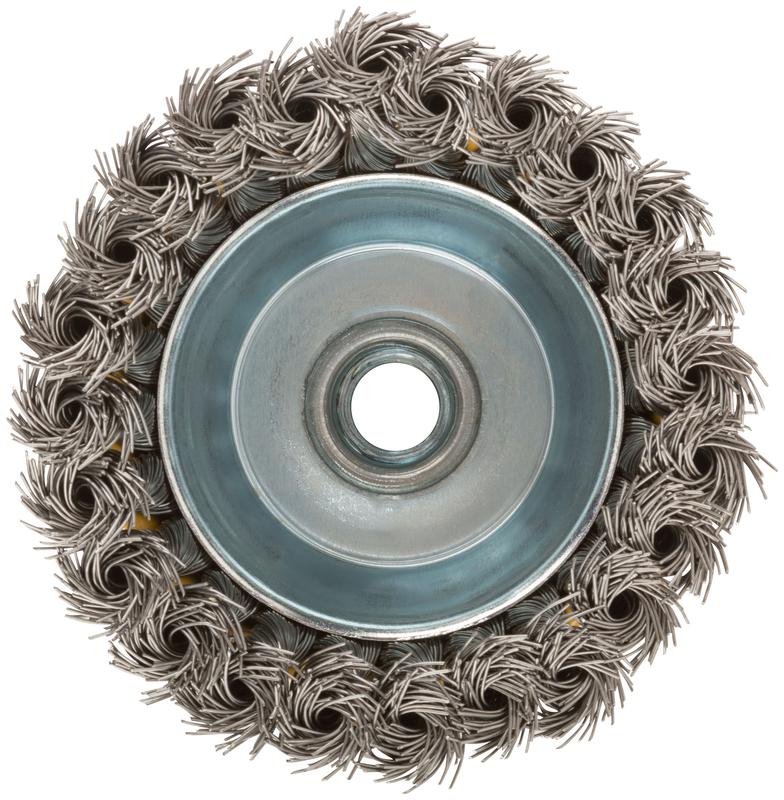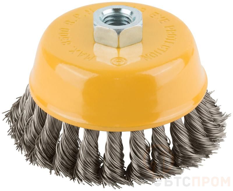 Корщетка-чашка FIT IT предназначена для грубой обработки деревянных и металлических поверхностей, зачистки сварных швов, снятия краски и ржавчины. Резьбовая посадка М14 прочно фиксирует корщетку на электроинструменте. Основа корщетки выполнена из инструментальной стали, проволочная витая щетина - из нержавеющей стали, что обеспечивает оснастке повышенную износостойкость.