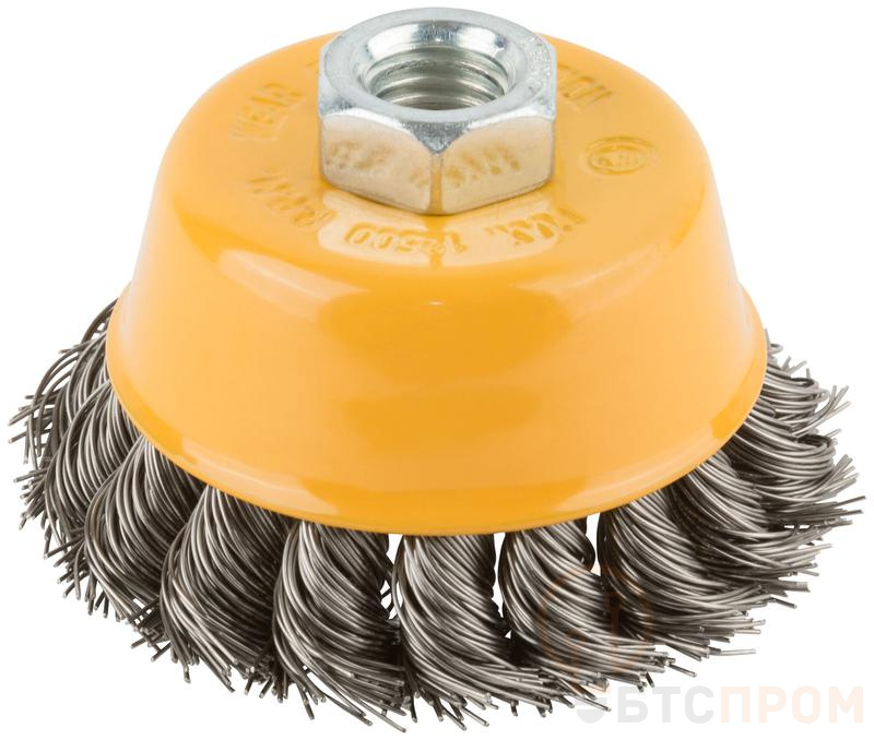 Корщетка-чашка FIT IT предназначена для грубой обработки деревянных и металлических поверхностей, зачистки сварных швов, снятия краски и ржавчины. Резьбовая посадка М14 прочно фиксирует корщетку на электроинструменте. Основа корщетки выполнена из инструментальной стали, проволочная витая щетина - из нержавеющей стали, что обеспечивает оснастке повышенную износостойкость.
