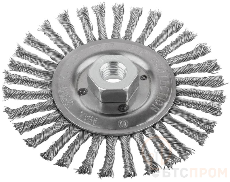 Дисковая прямая. Для УШМ. Гайка М14. Материал: стальная витая проволока. Упаковка: картонная коробка.