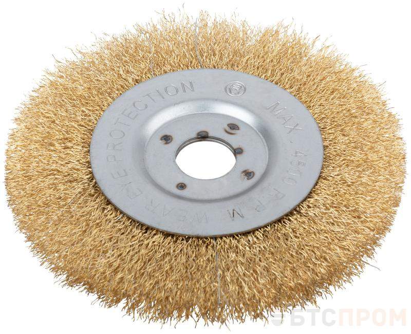 Корщетка-колесо посадочный диаметр 22.2мм стальная латунированная волнистая проволока 150мм FIT 39066