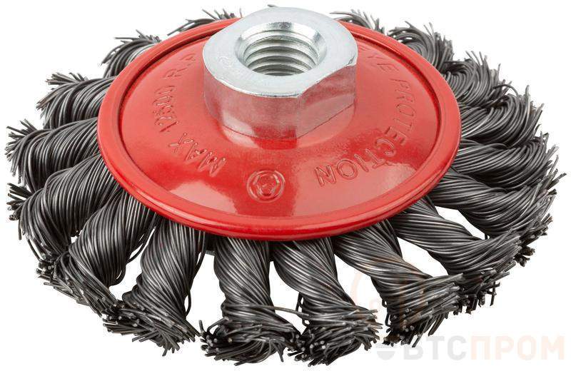 Корщетка-насадка для УШМ FIT IT типа ‘’колесо’’ предназначена для грубой обработки дерева и металла, зачистки сварных швов, снятия краски и ржавчины. Стальная витая проволока обеспечивает высокую скорость и эффективность работы. Корщетка типа «колесо» наиболее эффективна при обработке стыков, углов, пазов и различных труднодоступных мест. Гайка с резьбой М14 обеспечивает прочную фиксацию на УШМ.