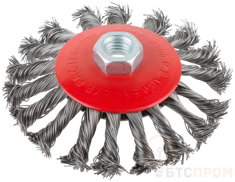 Тип "колесо", с наклоном. Для УШМ. Гайка М14. Материал: стальная витая проволока. Упаковка: картонная коробка.