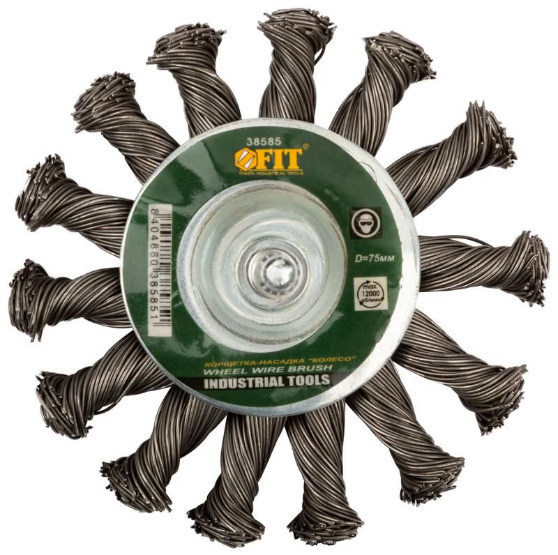 Корщетка-насадка для дрели FIT IT типа ‘’колесо’’ предназначена для грубой обработки дерева и металла, зачистки сварных швов, снятия краски и ржавчины. Стальная витая проволока обеспечивает высокую скорость и эффективность работы. Корщетка типа «колесо» наиболее эффективна при обработке стыков, углов, пазов и различных труднодоступных мест.