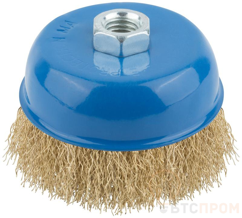 Тип «чашка». Для УШМ. Для очистки поверхностей от краски и ржавчины. Гайка М14. Латунированная волнистая проволока. Материал: инструментальная сталь. Упаковка: картонная коробка.
