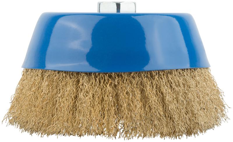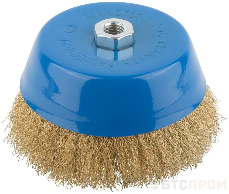 Тип «чашка». Для УШМ. Для очистки поверхностей от краски и ржавчины. Гайка М14. Латунированная волнистая проволока. Материал: инструментальная сталь. Упаковка: картонная коробка.