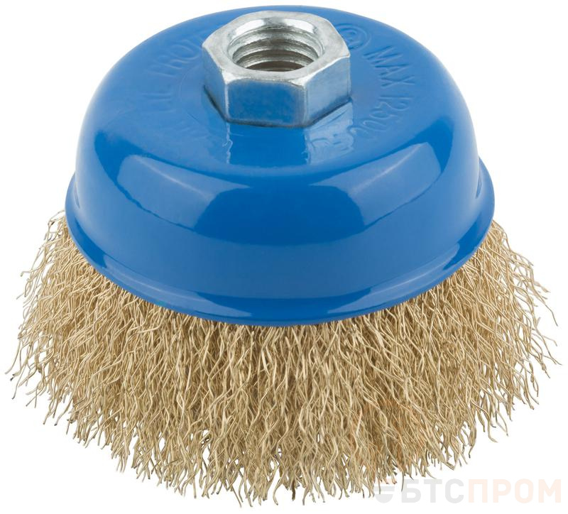 Корщетка-насадка для УШМ MOS типа ‘’чашка’’ предназначена для обработки дерева и металла, снятия краски. Форма «чашка» обеспечивает хорошую площадь прилегания к поверхности. Волнистая проволока обеспечивает деликатную зачистку поверхностей. Латунное покрытие проволоки предотвращает коррозию. Гайка с резьбой М14 обеспечивает прочную фиксацию на УШМ.