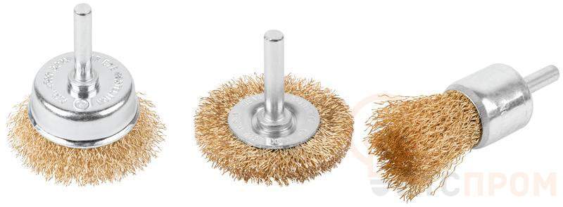 Набор щеток для дрели 3 шт ("Чашки" 25; 50мм "Плоская" 50мм) латун. витая проволока блист. Profi Cutop 82-926