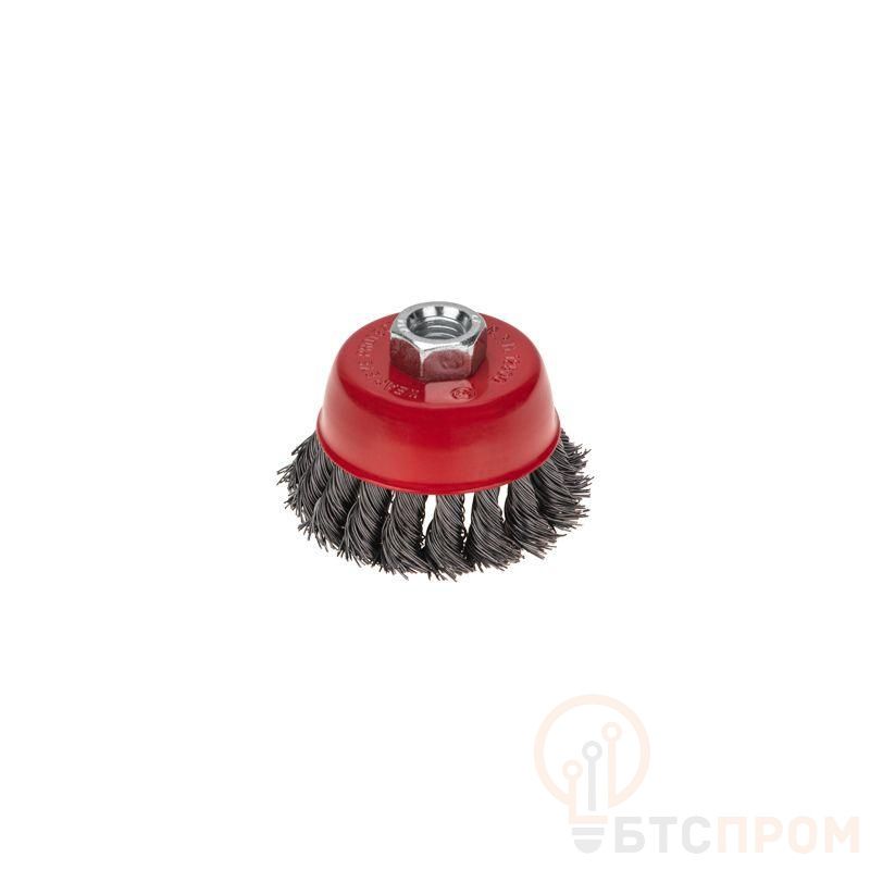 Чашечная щетка KRANZ применяется в составе угловой шлифовальной машины с целью очистки разнообразных металлических деталей и заготовок от слоя краски, лака, заусенцев, ржавчины, окалины или нагара. Подходит для обработки и выравнивания сварочных швов на стальных поверхностях. Прочная закаленная проволока собрана в тугие пучки с расходящимися краями. Такой тип проволоки характеризуется жесткостью, поэтому предназначен для удаления особо сложных загрязнений. Чашечная форма позволяет обрабатывать поверхности с большой площадью, а также обеспечивает улучшенное прилегание и равномерное распределение давления при чистке. Для защиты от коррозии на корпус нанесено эмалевое покрытие, а щетина покрыта маслом. Тип соединения М14 обеспечивает простоту и надежность установки на УШМ. Инструмент соответствует действующим стандартам качества и подходит для использования в условиях интенсивного и сложного труда.
