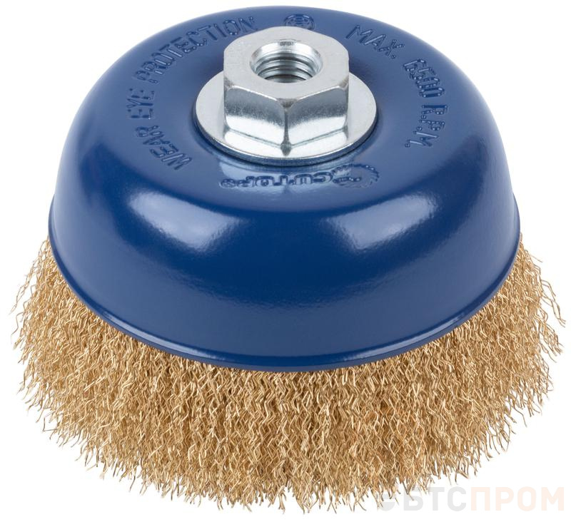 Щетка для УШМ Cutop Profi типа ‘’чашка’’ отлично подходит для обработки больших плоскостей. Форма ‘’чашка’’ обеспечивает хорошую площадь прилегания к поверхности. Конструкция щетки оснащена усиленной гайкой с шайбой (кроме D65), которая способствует предотвращению деформации изделия. Идеальная балансировка щеток значительно продлевает срок службы инструмента. Волнистая проволока обеспечивает деликатную зачистку поверхностей. Латунное покрытие проволоки предотвращает коррозию.