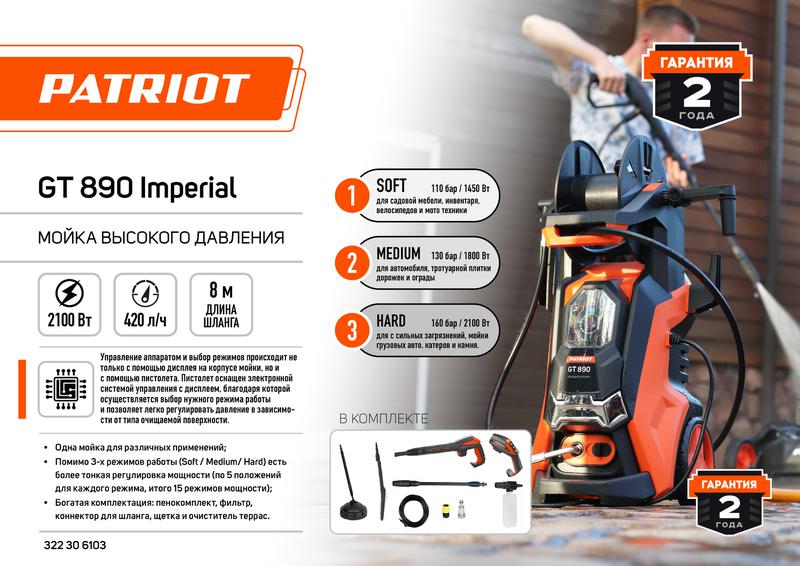 Аппарат моющий GT890 Imperial PATRIOT 322306103 фото в каталоге от BTSprom.by