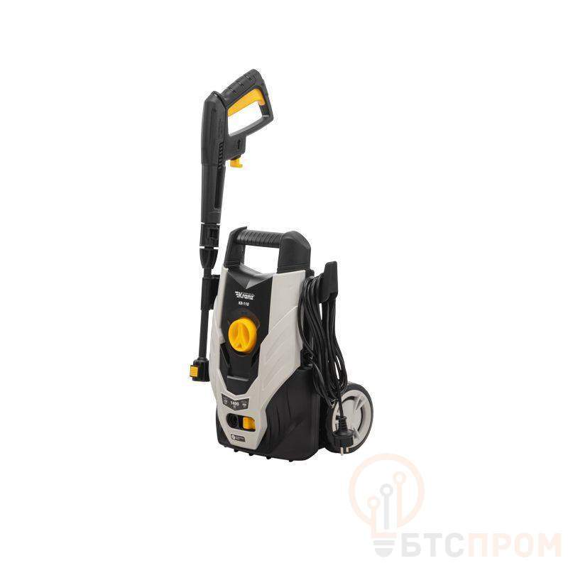 Мойка высокого давления KR-110 эффективно устраняет различные виды загрязнений при помощи струи воды под высоким давлением. Предназначена для бытового использования. Мощный двигатель 1400 Вт обеспечивает давление до 110 бар и производительность до 400 л/ч. Опция блокировки рычага пистолета исключает случайную подачу воды. При перегреве мотор отключается автоматически, что предотвращает его поломку. Фильтр тонкой очистки защищает компоненты мойки и очищаемую поверхность от повреждения мельчайшими твердыми частицами. Функция самостоятельного забора воды из емкости позволяет использовать мойку в местах без водопровода. Форма и интенсивность струи могут быть настроены с помощью регулируемого сопла. Это позволяет обрабатывать различные поверхности: автомобили, стены, велосипеды, напольные покрытия и т.д. Система полной остановки выключает двигатель при отпускании клавиши пистолета, что экономит энергию и увеличивает ресурс. Мойка отличается мобильностью благодаря кабелю длиной 5 м, удобной рукоятке и колесам. Шланг длиной 5 м обеспечивает удобство использования. На корпусе располагается держатель пистолета и распылителя, а также встроенный крюк для крепления провода. Предусмотрены быстросъемные коннекторы фиксации шланга и насадок.