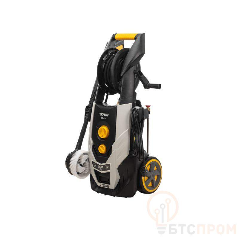 Мойка высокого давления KR-210 эффективно устраняет различные виды загрязнений при помощи струи воды под высоким давлением. Предназначена для бытового использования. Мощный двигатель 2600 Вт обеспечивает давление до 210 бар и производительность до 500 л/ч. Алюминиевая помпа гарантирует надежность и стабильное давление. Опция блокировки рычага пистолета исключает случайную подачу воды. При перегреве мотор отключается автоматически, что предотвращает его поломку. Фильтр тонкой очистки защищает компоненты мойки и очищаемую поверхность от повреждения мельчайшими твердыми частицами. Функция самостоятельного забора воды из емкости позволяет использовать мойку в местах без водопровода. Регулируемое сопло и сменные быстросъемные насадки с разными углами распыления (0, 15, 25, 40) позволяют изменять интенсивность струи, а также наносить моющие средства. Пеногенератор встроен в корпус мойки. Подача пены плавно регулируется поворотной рукояткой. Система полной остановки выключает двигатель при отпускании клавиши пистолета, что экономит энергию и увеличивает ресурс. Мойка отличается мобильностью благодаря кабелю длиной 5 м, удобной рукоятке и колесам. Усиленный армированный шланг длиной 8 м обеспечивает удобство использования. На корпусе мойки располагается держатель пистолета и распылителя, а также встроенный крюк для крепления провода. Предусмотрены быстросъемные коннекторы фиксации шланга и насадок.