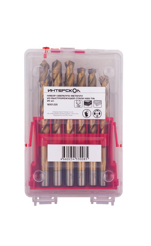 Набор сверл по металлу ИНТЕРСКОЛ 18301.025 — это комплект из 25 профессиональных инструментов для высокоточного и эффективного сверления. Каждое сверло изготовлено из высококачественной быстрорежущей стали (HSS) и покрыто износостойким слоем нитрида титана (TiN). Это покрытие значительно увеличивает твердость и термостойкость инструмента, снижает трение и продлевает общий ресурс.