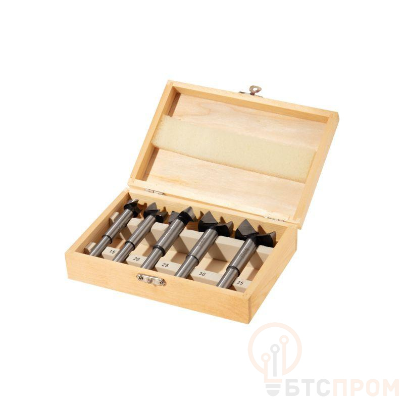 Набор сверл Форстнера включает в себя 5 высококачественных инструментов, предназначенных для эффективной работы с твердыми породами древесины, а также с ДСП, ДВП, клееной древесиной и фанерой. Применяется для изготовления глухих отверстий для мебельной фурнитуры. Используется при производстве мебели и выполнении отделочных работ. Благодаря продуманной конструкции инструментов стенки и дно отверстий получаются ровными и гладкими. Сверла, входящие в состав набора, выполнены из высококачественной стали 45 и обладают повышенной устойчивостью к механическим нагрузкам. Центрирующее острие удерживает сверло на заданной оси, что облегчает засверливание и позволяет получить ровное отверстие. Для удобства хранения и транспортировки набор поставляется в деревянном кейсе.