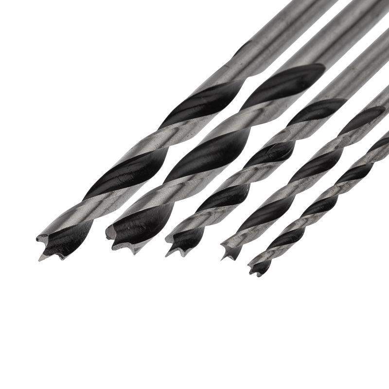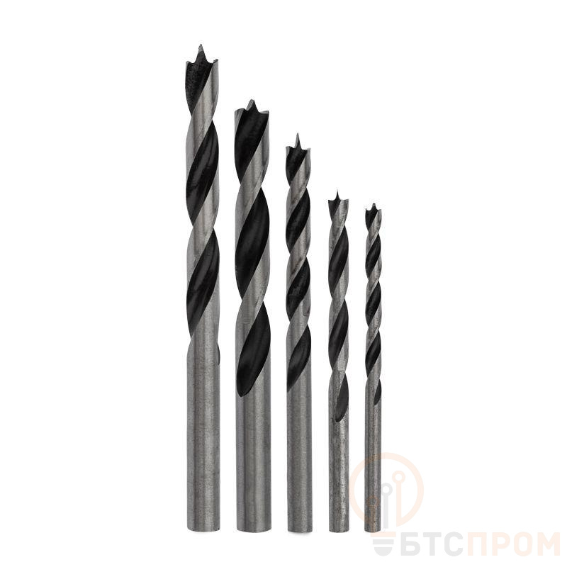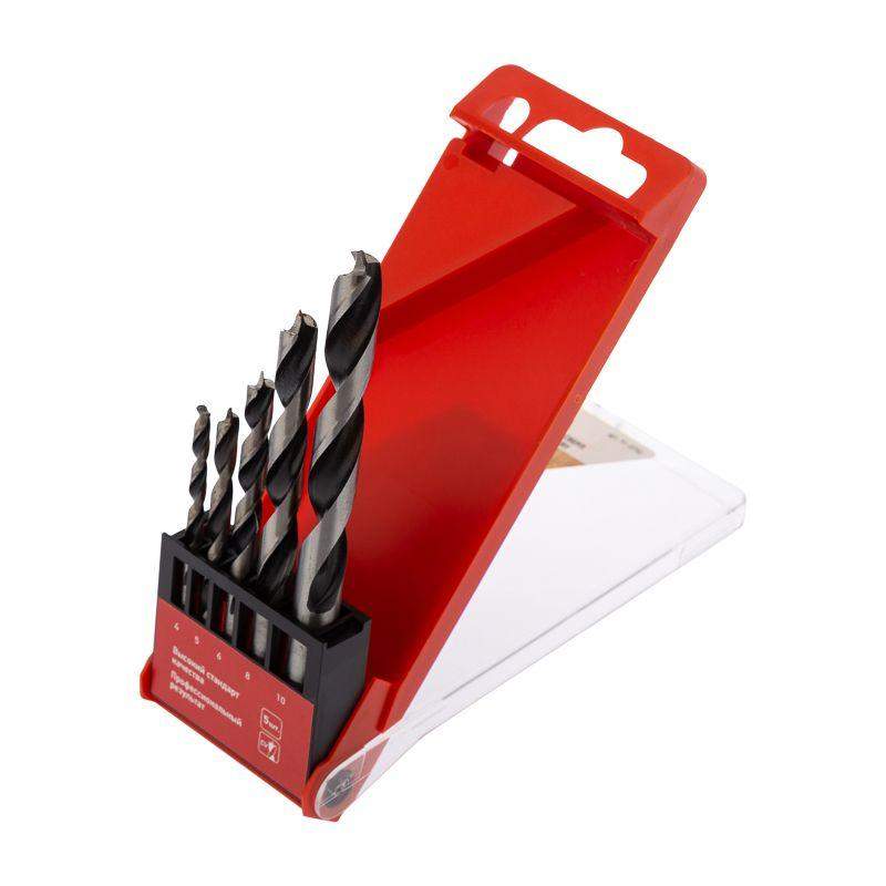 Набор сверл по дереву популярных диаметров предназначен для сверления отверстий различных диаметров в мягких и твердых породах древесины, ДВП, ДСП, фанере. Набор подходит как для бытового, так и для профессионального применения, будет полезен в строительстве, при выполнении ремонтных и столярных работ. Каждое сверло изготовлено из инструментальной стали, что способствует износостойкости инструмента. На конце рабочей части находится центрирующее острие, которое препятствует отклонению сверла от заданной оси и позволяет удобно засверливаться в материал. Цилиндрический хвостовик, совместимый со стандартным патроном дрели, надежно фиксирует оснастку во время работы инструмента. Набор состоит из сверл диаметром 4-5-6-8-10 мм (5 шт.).