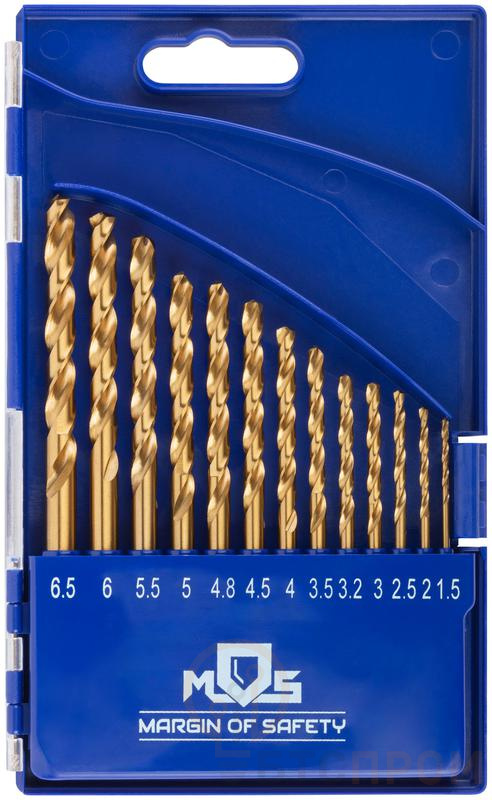 Набор сверл по металлу HSS шлифованные титановое покрытие угол заточки 135град. пласт. кейс 13шт (1.5-2.0-2.5-3-3.2-3.5-4-4.5-4.8-5-5.5-6-6.5мм) MOS 35734М