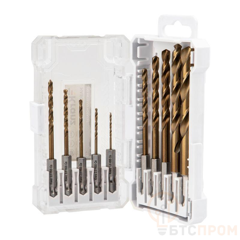 Набор сверл по металлу "Кобальт" 1.5-10 мм Р6М5К5 шестигранный хвостовик (10 предметов) Kranz KR-91-0634-1