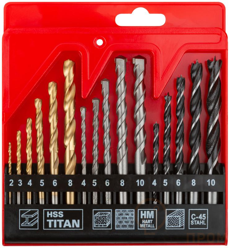 Набор сверл ‘’Комби’’ FIT IT предназначен для сверления отверстий в металле, дереве и бетоне. В наборе: 6 сверл по металлу из быстрорежущей стали с титановым покрытием (2-3-4-5-6-8 мм); 5 сверл по бетону из инструментальной стали с твердосплавной вставкой (4-5-6-8-10 мм) и 5 сверл по дереву (4-5-6-8-10 мм). Сверла изготовлены из высококачественных материалов, что обеспечивает их долговечность и надежность в использовании. Цилиндрический хвостовик совместим с большинством типов патронов электроинструментов. 16 сверл в комплекте обеспечивают широкий спектр применения.