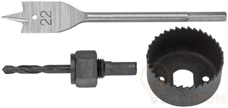 Набор для врезки замков FIT IT предназначен для работ по дереву, фанере, ДСП. В наборе представлены все необходимые инструменты для быстрой установки замка: коронка, направляющее сверло, перовое сверло. Центрирующее сверло обеспечивает точное позиционирование коронки, исключая ее смещение во время работы. Разводка зубьев на коронке обеспечивает высокую скорость пропила. Шестигранный хвостовик на адаптере и перовом сверле предотвращает проскальзывание в патроне электроинструмента.