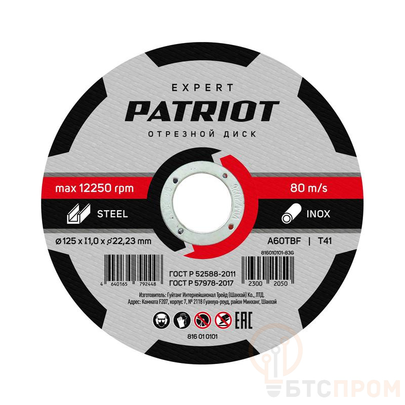 Диск абразивный отрезной EXPERT 125х1.0х22.23 по металлу PATRIOT 816010101 фото в каталоге от BTSprom.by