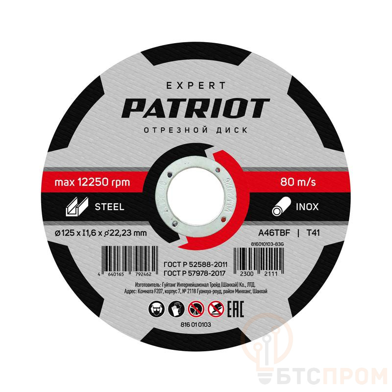 Диск абразивный отрезной EXPERT 125х1.6х22.23 по металлу PATRIOT 816010103 фото в каталоге от BTSprom.by