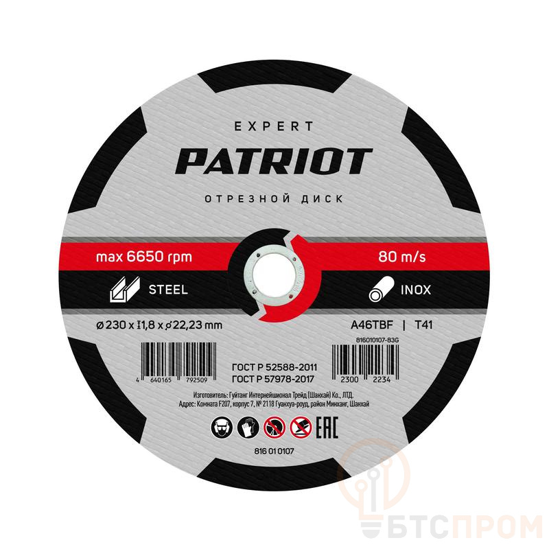 Диск абразивный отрезной EXPERT 230х1.8х22.23 по металлу PATRIOT 816010107 фото в каталоге от BTSprom.by