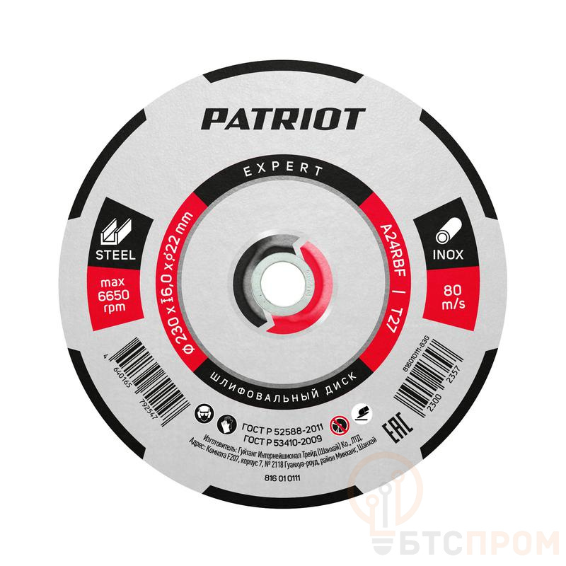 Диск абразивный шлифовальный EXPERT 230х6.0х22.23 по металлу PATRIOT 816010111 фото в каталоге от BTSprom.by