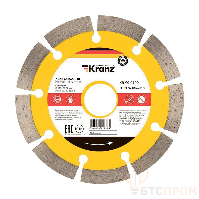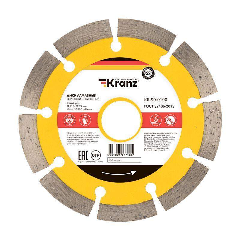 Диск отрезной алмазный сегментный 115х22.2мм Kranz KR-90-0100 фото в каталоге от BTSprom.by